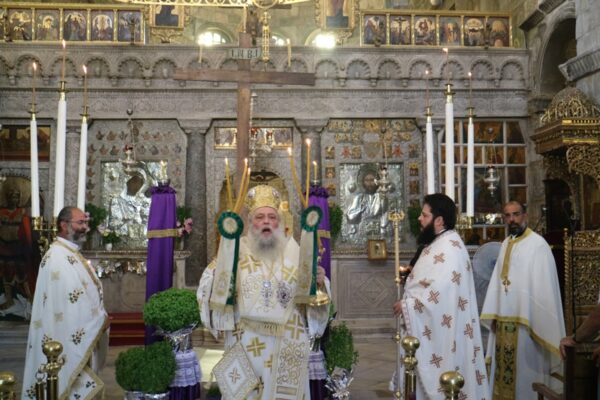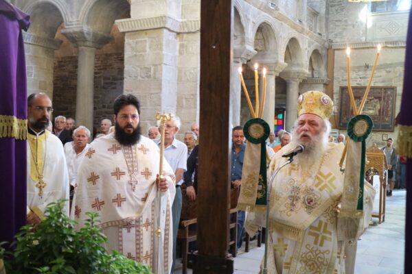 Αρχιερατική Θεία Λειτουργία τελέσθηκε κατά τις 14 Σεπτεμβρίου 2019, ημέρα κατά την οποία η Αγία μας Εκκλησία εορτάζει την Παγκόσμιο Ύψωση του Τιμίου και Ζωοποιού Σταυρού του Κυρίου μας, στο Πανηγυρίζον Ιερό Προσκύνημα Παναγίας Εκατονταπυλιανής Πάρου ιερουργούντος του Σεβασμιωτάτου Μητροπολίτου Παροναξίας κ. Καλλινίκου.
