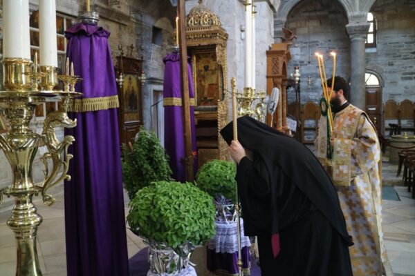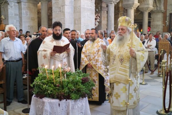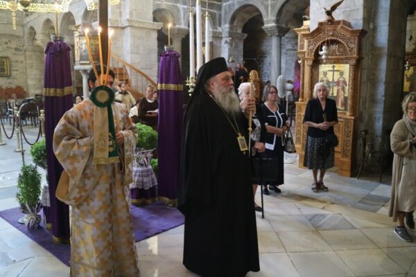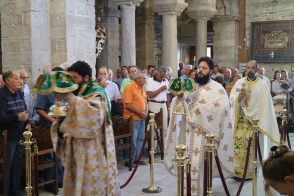Αρχιερατική Θεία Λειτουργία τελέσθηκε κατά τις 14 Σεπτεμβρίου 2019, ημέρα κατά την οποία η Αγία μας Εκκλησία εορτάζει την Παγκόσμιο Ύψωση του Τιμίου και Ζωοποιού Σταυρού του Κυρίου μας, στο Πανηγυρίζον Ιερό Προσκύνημα Παναγίας Εκατονταπυλιανής Πάρου ιερουργούντος του Σεβασμιωτάτου Μητροπολίτου Παροναξίας κ. Καλλινίκου.