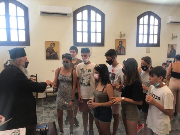 Ο Σεβασμιώτατος καλωσόρισε μικρούς και μεγάλους στο νησί των Αγίων Νικοδήμου του Αγιορείτου και Νικολάου του Πλανά, συζήτησε μαζί τους και τους προσέφερε αναμνηστικά δώρα και κεράσματα.