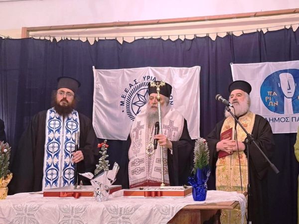 Το Σάββατο 13-1-2024 το πρωί ο Σεβασμιώτατος Ποιμενάρχης, Μητροπολίτης Παροναξίας κ. Καλλίνικος έπλευσε για την Πάρο. Το απόγευμα της ίδιας ημέρας ο Σεβασμιώτατος μετέβη στις Λεύκες Πάρου, όπου στο Κοινοτικό Μέγαρο ευλόγησε την Αγιοβασιλόπιτα της Τοπικής Κοινότητας καθώς και του Συλλόγου Μ.Ε.Ε.Α.Σ. Υρία Λευκών. Στο τέλος της Ακολουθίας, ο Σεβασμιώτατος απηύθυνε ευχές προς όλους για τη νέα χρονιά.