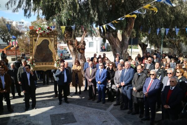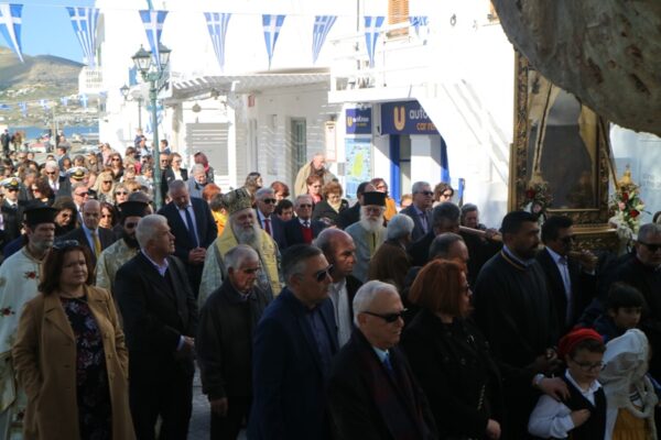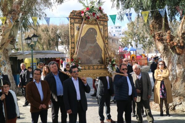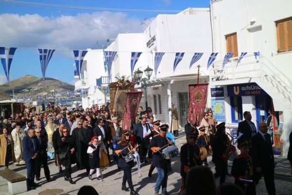 Εν συνεχεία προέστη της καθιερωμένης Λιτανείας της Ιεράς Εικόνος, συνοδεία της Φιλαρμονικής του Δήμου Πάρου. Τόσο στη Θεία Λειτουργία όσο και στην Ιερά Λιτανεία συμμετείχαν τα σχολεία της πόλεως και οι τοπικοί άρχοντες της νήσου.