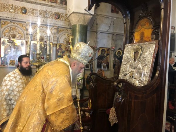 Προ της Απολύσεως της Θείας Λειτουργίας, σύμφωνα με το Τυπικό της Αγίας μας Εκκλησίας, πραγματοποιήθηκε εντός του Ιερού Ναού, η Λιτάνευση των Αγίων Εικόνων, στο τέλος της οποίας ο Σεβασμιώτατος, αφού ανέγνωσε το «Συνοδικόν της Ορθοδοξίας», απηύθυνε ευχές προς τους εκκλησιαζομένους.