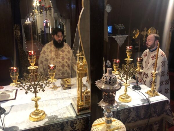 Κατά την διάρκεια του ‘’Κοινωνικού’’ κήρυξε τον Θείο Λόγο. Προ της Απολύσεως προέστη δεήσεως υπέρ των ασθενούντων και δοκιμαζομένων αδελφών μας και ανέγνωσε ειδική ευχή υπέρ απαλλαγής από την επιδημία του κορωνοϊού.
