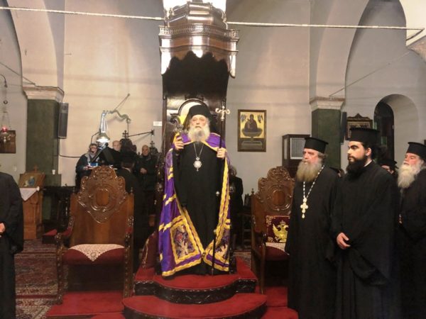 Στο τέλος της Ακολουθίας ο Σεβασμιώτατος ευχήθηκε επί τη εισόδω στην Αγία και Μεγάλη Τεσσαρακοστή τονίζοντας ότι η πύλη εισόδου της Μεγάλης Τεσσαρακοστής είναι η συγγνώμη, γι’ αυτό και ο πρώτος Κατανυκτικός Εσπερινός ονομάζεται και Εσπερινός «της Συγγνώμης» και ολοκληρώνεται με το Σταυροαναστάσιμο Πάσχα και μάλιστα με έναν άλλο Εσπερινό (Πανηγυρικό), τον Εσπερινό «της Αγάπης», θέλοντας η Εκκλησία να μας υπογραμμίσει ότι για να φτάσουμε στην τελεία αγάπη, που είναι ο ίδιος ο Θεός, πρέπει με ταπείνωση να περάσουμε μέσα από την συγχωρητικότητα και την αγάπη προς τον συνάνθρωπο.