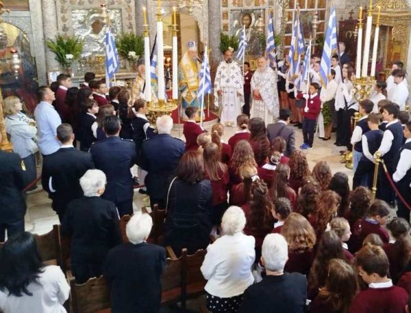 Μετά το πέρας της Θείας Λειτουργίας, προέστη της Δοξολογίας της Εθνικής Επετείου, πλαισιούμενος από τους ιερείς της πόλεως και τον Διάκονο και την συμμετοχή των τοπικών αρχόντων, των αντιπροσωπειών μαθητών των σχολικών μονάδων, πολιτιστικών συλλόγων και φορέων του νησιού καθώς και πλήθους κόσμου.