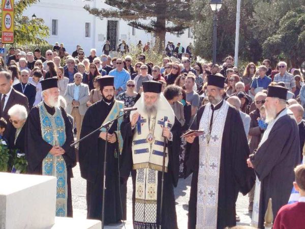 Ακολούθως τελέσθηκε από τον Σεβασμιώτατο Επιμνημόσυνος Δέηση στο Ηρώο της πόλεως και εν συνεχεία άπαντες μετέβησαν στην παραλιακή οδό που παρηκολούθησαν την παρέλαση.