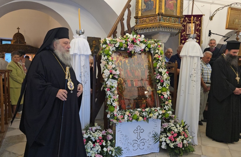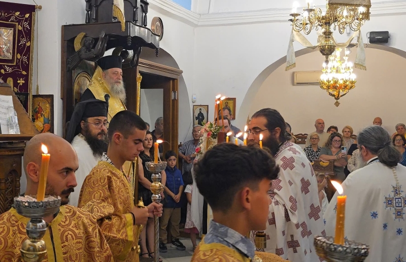 Κατόπιν, μετέβη στον Πανηγυρίζοντα Ιερό Ενοριακό Ναό Τιμίου Προδρόμου του ομωνύμου χωριού, όπου χοροστάτησε στον Πανηγυρικό Εσπερινό, ευλόγησε τους προσφερθέντες άρτους και κήρυξε τον θείο λόγο, με τη συμμετοχή κληρικών της νήσου.