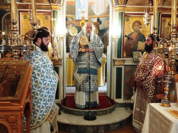 Ο Σεβασμιώτατος λειτούργησε πλαισιούμενος από τον Πρωτοσυγκελλεύοντα της Ιεράς Μητροπόλεως, Αρχιμ. Δωρόθεο Βενετσανόπουλο, ο οποίος και κήρυξε τον θείο λόγο και τον οικείο Εφημέριο Πρωτοπρ. Θωμά Κυδωνιέα. Προ της Απολύσεως, ο Σεβασμιώτατος προέστη του 40νθημέρου Μνημοσύνου του αειμνήστου Νικήτα Τριανταφύλλου.