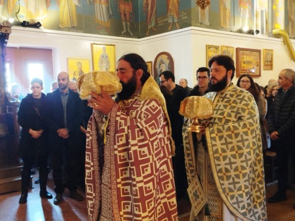 Ο Σεβασμιώτατος λειτούργησε πλαισιούμενος από τον Πρωτοσυγκελλεύοντα της Ιεράς Μητροπόλεως, Αρχιμ. Δωρόθεο Βενετσανόπουλο, ο οποίος και κήρυξε τον θείο λόγο και τον οικείο Εφημέριο Πρωτοπρ. Θωμά Κυδωνιέα. Προ της Απολύσεως, ο Σεβασμιώτατος προέστη του 40νθημέρου Μνημοσύνου του αειμνήστου Νικήτα Τριανταφύλλου.