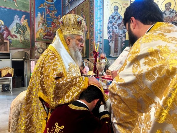 Κατά την διάρκεια της Θείας Λειτουργίας ο Σεβασμιώτατος τέλεσε την εις Διάκονον Χειροτονία του ως άνω νέου, ο οποίος είναι έγγαμος και πατέρας ενός τέκνου. Προ της Χειροτονίας προσφώνησε ο Χειροτονούμενος, και εν συνεχεία αντιφώνησε ο Σεβασμιώτατος, ο οποίος ευχήθηκε στον π. Δαυίδ να διακονήσει την Εκκλησία του Χριστού με ταπείνωση, υπακοή, αφοσίωση και αγάπη στον Κύριο και την Εκκλησία Του και πιστότητα και στοργή στην οικογένειά του.