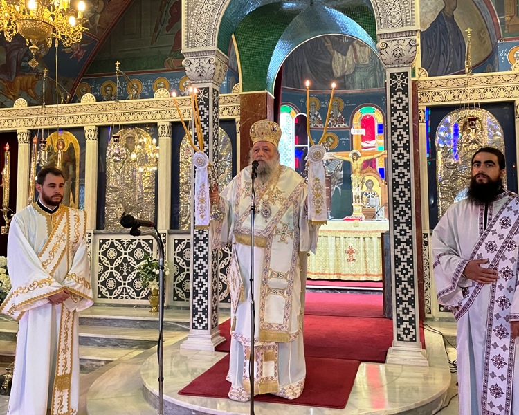 Στον ως άνω Ιερό Ναό ο Σεβασμιώτατος προεξήρχε της Θείας Λειτουργίας, στο τέλος της οποίας προέστη των Μνημοσύνων κεκοιμημένων ενοριτών. Κατά την ώρα του Κοινωνικού, τον θείο λόγο κήρυξε ο προαναφερθείς π. Γεώργιος.