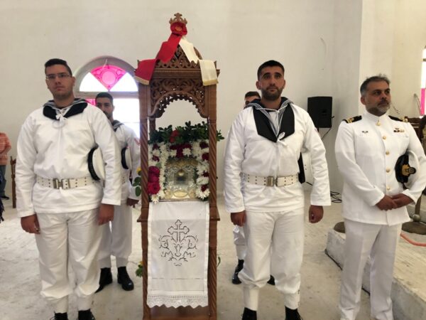 Μετά το πέρας της Πανηγυρικής Θείας Λειτουργίας και την προσφορά των κερασμάτων ο Σεβασμιώτατος μετέβη (μετά από πρόσκληση του Διοικητού) στην παρακείμενη μονάδα Πολεμικού Ναυτικού (Παρατηρητήριο) όπου είχε την ευκαιρία να συζητήσει με τους υπηρετούντες και να τους προσφέρει αναμνηστικά δώρα.