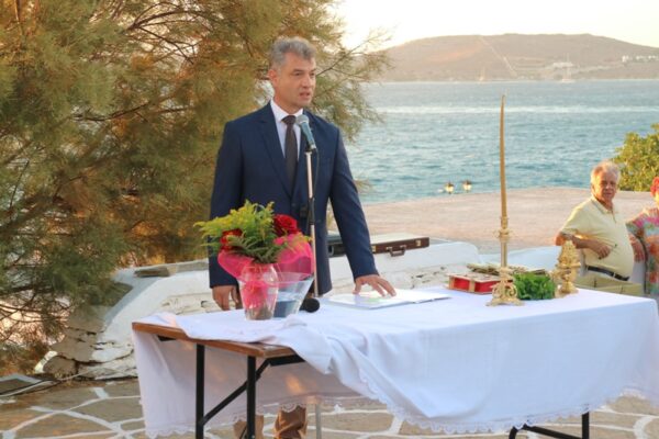20/08/2019 20/08/2019 Το απόγευμα της Κυριακής 18 Αυγούστου 2019, στον αύλειο χώρο της Αγίας Άννης Παροικίας (παραπλεύρως του Δημαρχιακού Μεγάρου Πάρου) τελέσθη ο Αγιασμός και η Ορκωμοσία του επανεκλεγέντος Δημάρχου Πάρου κ. Μάρκου Κωβαίου και των μελών των Δημοτικών και Τοπικών Συμβουλίων της Πάρου. Στο τέλος της τελετής , ο Σεβασμιώτατος Μητροπολίτης Παροναξίας, κ. Καλλίνικος, ευχήθηκε στις...