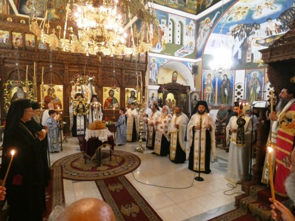 Ο Εσπερινός τελέσθηκε στον Ιερό Ναό του Αγίου ο οποίος βρίσκεται παραπλεύρως του Καθολικού της Ιεράς Μονής, χοροσταστούντος του Σεβασμιωτάτου Μητροπολίτου Καττάρων κ. Μακαρίου και συγχοροστατούντων του Θεοφιλεστάτου Επισκόπου Κεράμων κ. Βαρθολομαίου και του Μητροπολίτη Παροναξίας κ. Καλλινίκου.