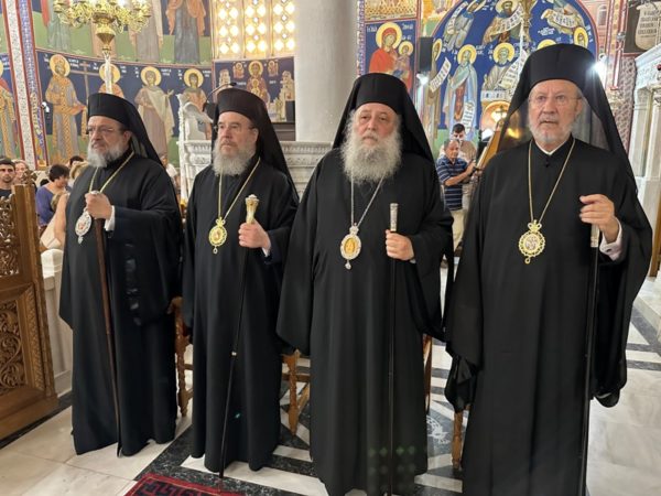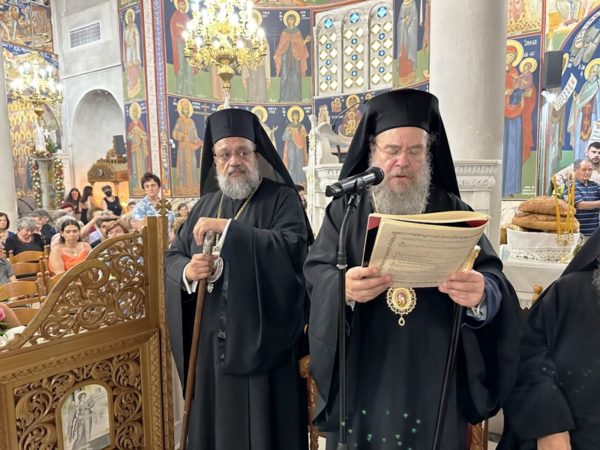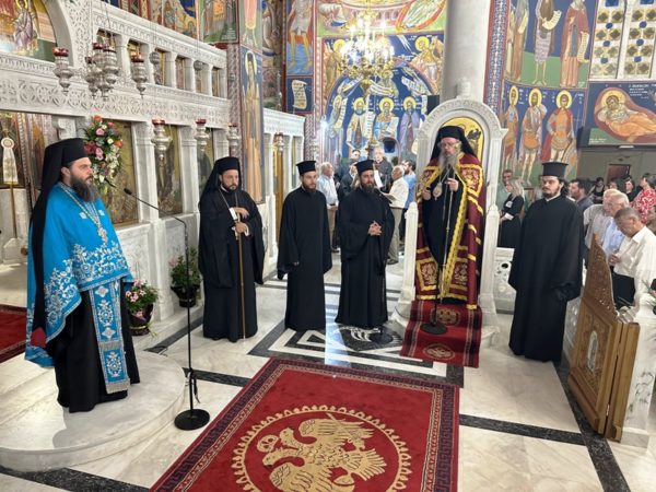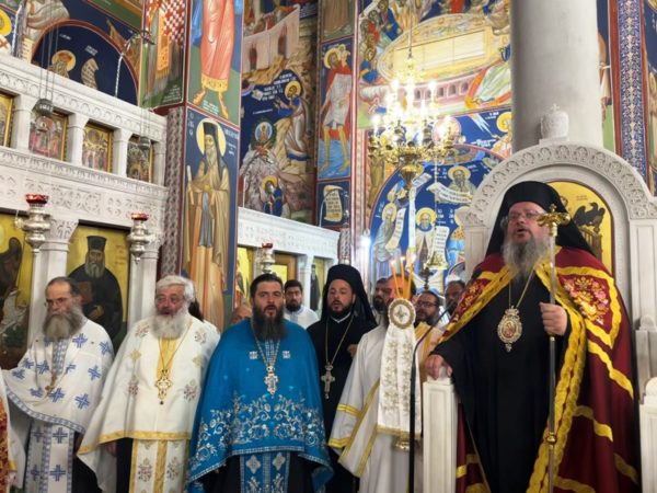 Στην Ακολουθία χοροστάτησε ο Σεβασμιώτατος Μητροπολίτης Λαρίσης και Τυρνάβου κ. Ιερώνυμος, συγχοροστατούντων των Σεβασμιωτάτων Μητροπολιτών Μεσσηνίας κ. Χρυσοστόμου, Ιερισσού, Αγίου Όρους και Αρδαμερίου κ. Θεοκλήτου, του Θεοφιλεστάτου Επισκόπου Κεράμων κ. Βαρθολομαίου και του Ποιμενάρχου κ. Καλλινίκου.