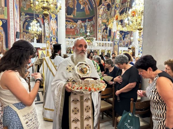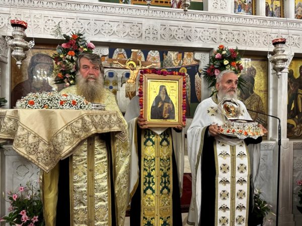 Νωρίτερα, στον αύλειο χώρο του Ιερού Ναού, πραγματοποιήθηκε η υποδοχή της Τιμίας Χειρός του Οσίου Πατρός Αγίου Αρσενίου του εν Πάρω, την οποία κόμισε από την Ιερά Μονή Χριστού Δάσους-Αγίου Αρσενίου Πάρου, ο Ιεροκήρυκας της Ιεράς Μητροπόλεως, Αρχιμ. Αρσένιος Μελισσιανός.