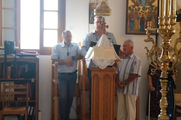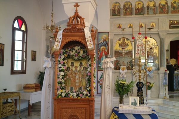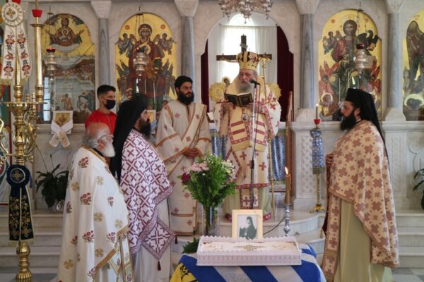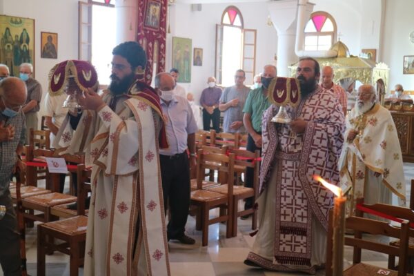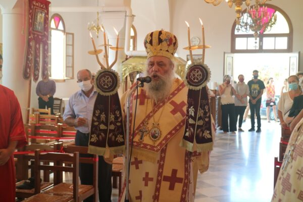 Προ της Απολύσεως, σύμφωνα με την τάξη της Αγίας μας Εκκλησίας, και με βαθύτατο σεβασμό, ο Σεβασμιώτατος ανέγνωσε την ευχή των κολλύβων εορταζομένου Αγίου. Η Θεία Λειτουργία τελέσθηκε με τη συμμετοχή των τοπικών αρχόντων και συλλόγων καθώς και πλήθος πιστών, προς τους οποίους ο Σεβασμιώτατος απηύθυνε ευχές.