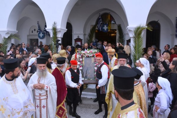 Κατά την Ακολουθία του Όρθρου χοροστάτησε ο Σεβασμιώτατος Μητροπολίτης Ειρηνουπόλεως κ. Νίκανδρος, ο οποίος εν συνεχεία προεξήρχε της Θείας Λειτουργίας και κήρυξε τον θείο λόγο, συλλειτουργούντων του Σεβασμιωτάτου Μητροπολίτου Παροναξίας κ. Καλλινίκου και του Θεοφιλεστάτου Επισκόπου Κεράμων κ. Βαρθολομαίου και πολλών κληρικών του νησιού.