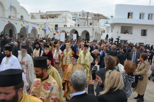 Εν συνεχεία ο Σεβασμιώτατος μετέβη στον ειδικά διαμορφωμένο χώρο στο λιμάνι της Νάξου, όπου παρέστη στην εκδήλωση κατά την διάρκεια της οποίας ο Πρωθυπουργός κ. Κυριάκος Μητσοτάκης, υπέγραψε την σύμβαση για την δημιουργία και ενεργοποίηση του Ταμείου Απανθρακοποίησης των Νησιών. Στις εορταστικές εκδηλώσεις συμμετείχαν οι Βουλευτές του Νομού Κυκλάδων, Υπουργοί και Υφυπουργοί, ο Περιφερειάρχης Νοτίου Αιγαίου, ο Δήμαρχος Νάξου και Μικρών Κυκλάδων, ο Έπαρχος Νάξου-Αμοργού, Δήμαρχοι του Νομού, Αντιπεριφερειάρχες, ο Ταξίαρχος- Αστυνομικός Διευθυντής Κυκλάδων, ο Πρόεδρος του Επιμελητηρίου Κυκλάδων και ξένοι εκπρόσωποι των αρμοδίων οργάνων της Ευρωπαϊκής Ένωσης.