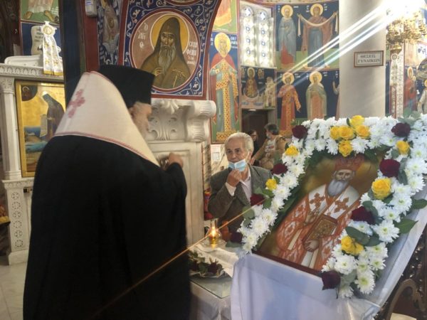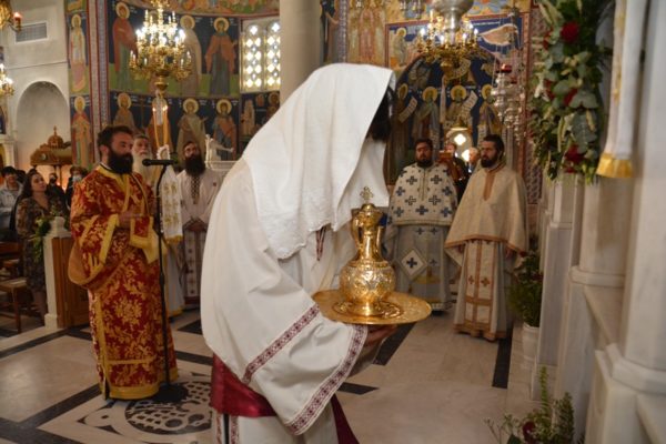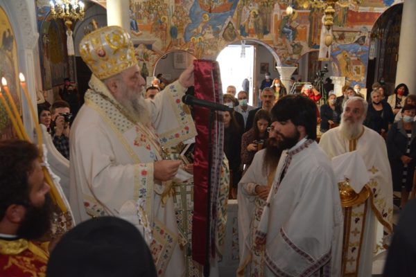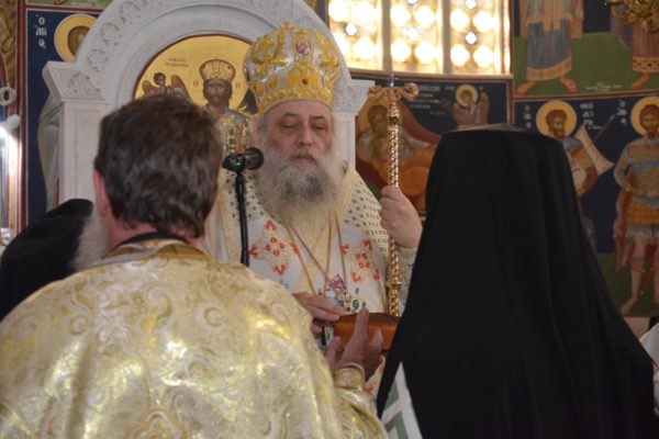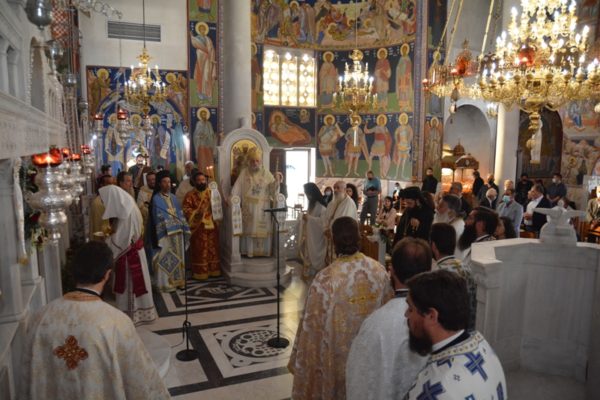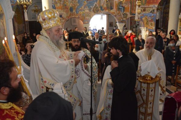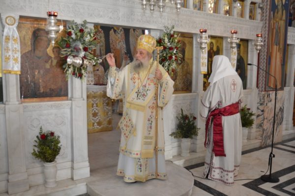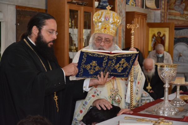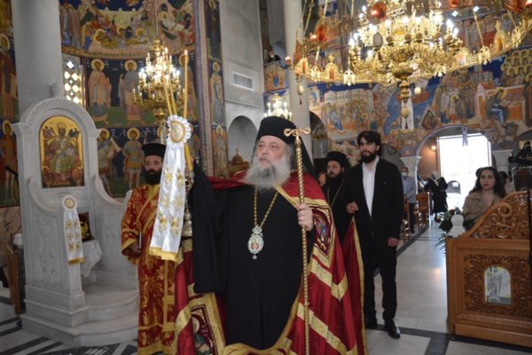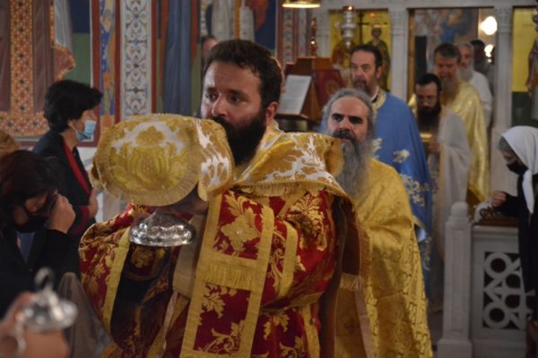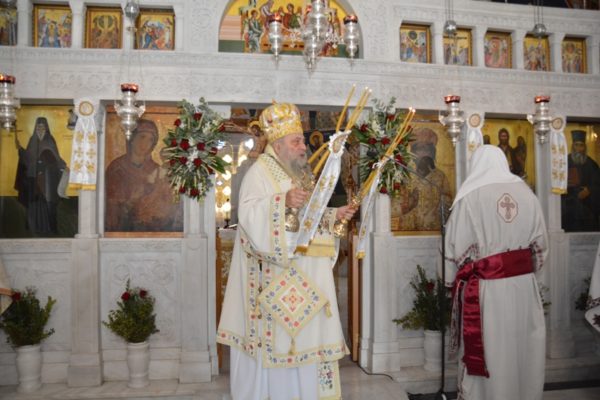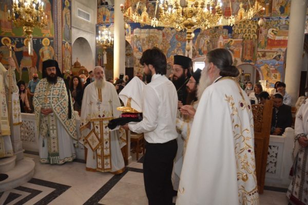 Μετά την μικρή δέηση της υποδοχής του Τιμίου Λειψάνου χοροστάτησε στον Όρθρο και ευλόγησε τους προσφερθέντες Άρτους. Προ της ενάρξεως της Θείας Λειτουργίας, χειροθέτησε τον υποψήφιο Διάκονο Νεκτάριο Σκουλάτο στο βαθμό του Υποδιακόνου.