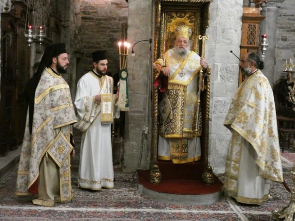 Στο τέλος της Θείας Λειτουργίας ο Σεβασμιώτατος απηύθυνε τις πατρικές ευχές του προς όλους.