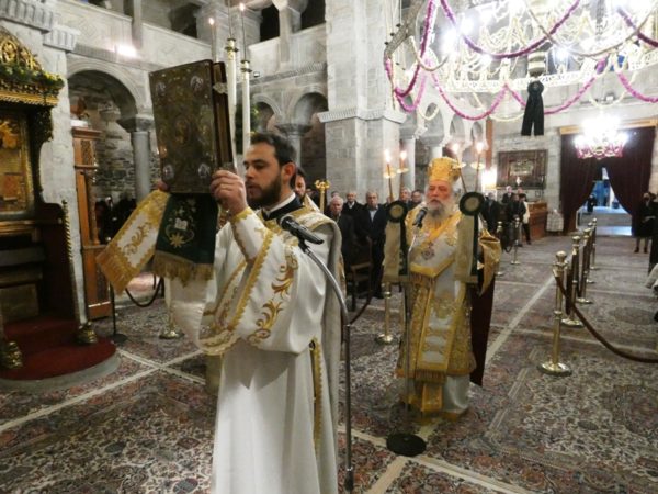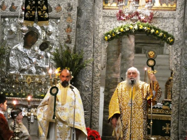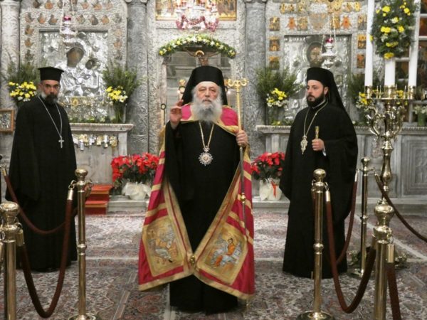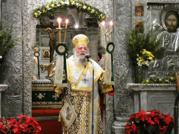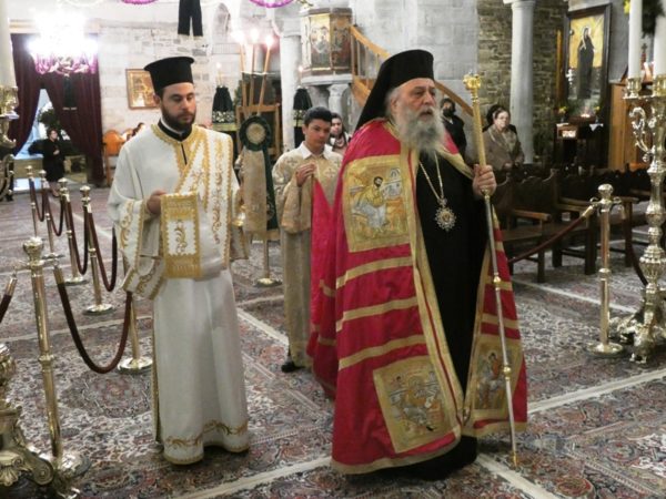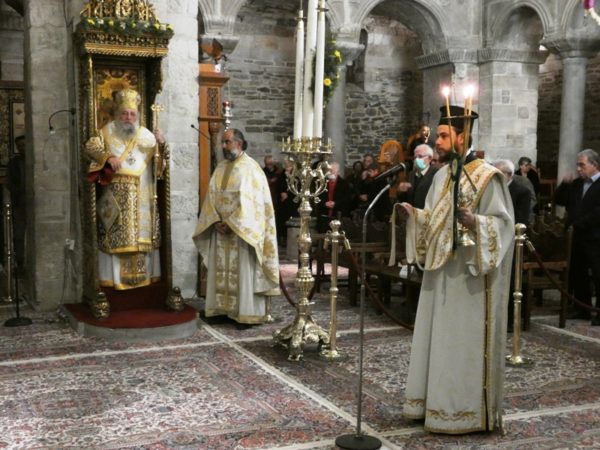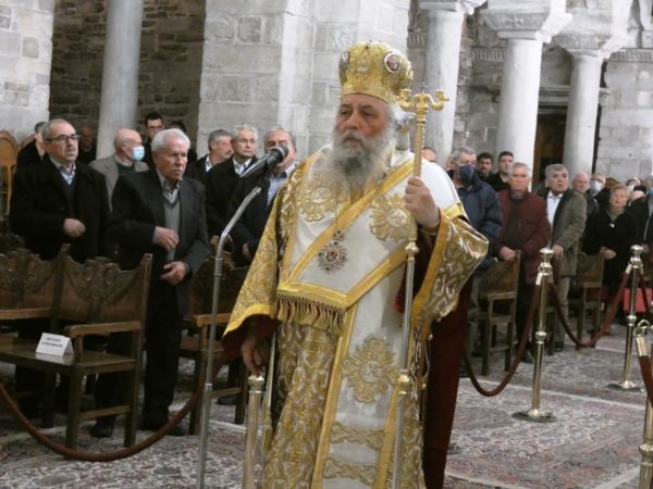 Στο τέλος της Θείας Λειτουργίας ο Σεβασμιώτατος απηύθυνε τις πατρικές ευχές του προς όλους.