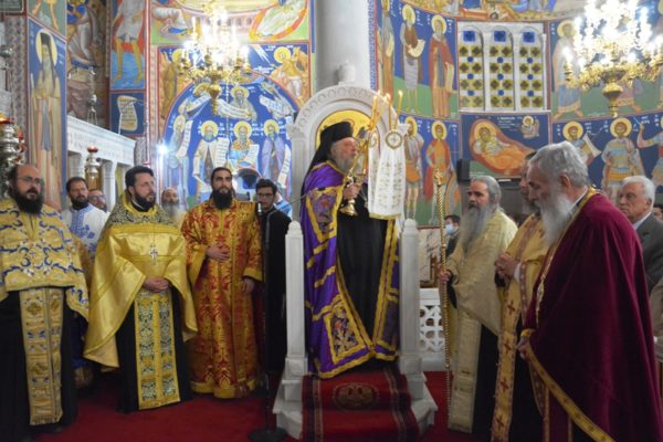 Προ του «Δι’ ευχών» ο Σεβασμιώτατος απευθυνόμενος προς τον ιερό κλήρο και τους πιστούς, βαθύτατα συγκινημένος ανέφερε μεταξύ άλλων, ότι τελούμε απόψε με πόνο ψυχής για τα δεκάδες θύματα του τραγικού σιδηροδρομικού δυστυχήματος, που σκόρπισε ανείπωτη θλίψη και βύθισε σε απύθμενο πένθος τις οικογένειες τους, αλλά και όλη μας την πατρίδα. Μοναδική παρηγοριά σε αυτές τις οριακές καταστάσεις δοκιμασίας μπορούμε να βρούμε μόνο κοντά στον Χριστό μας και την Παναγία μας και μέσα στην Αγία μας Εκκλησία «συν πάσι τοις αγίοις» που είναι και η καλύτερη παρηγοριά της ψυχής μας.