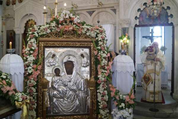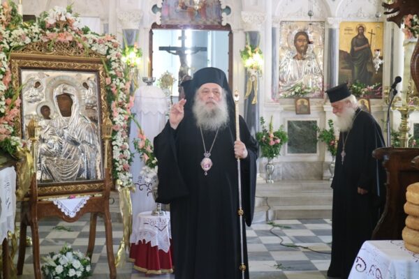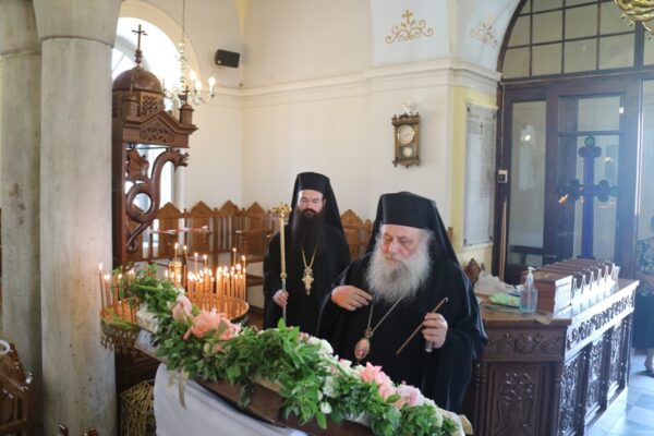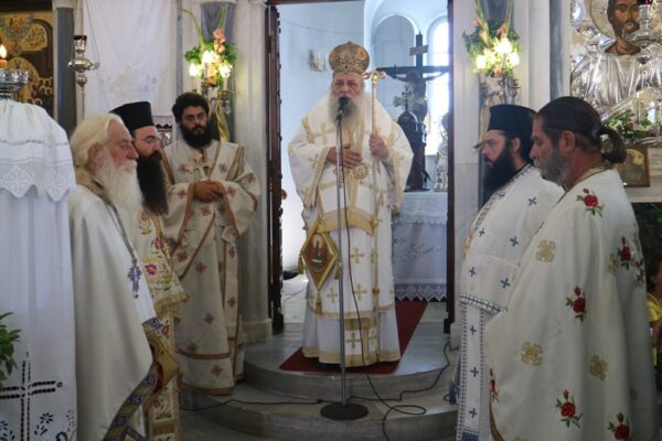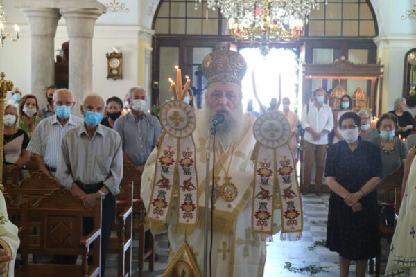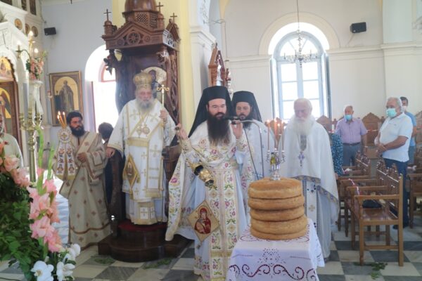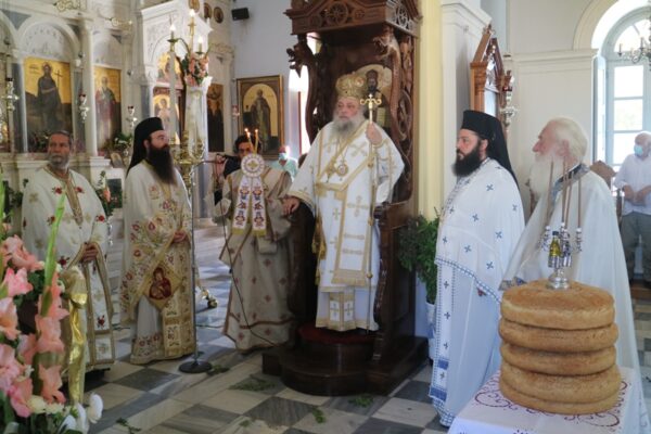 Σήμερα, Κυριακή 23 Αυγούστου 2020, Πανήγυρις της Αποδόσεως της Θεομητορικής Εορτής της Κοιμήσεως της Υπεραγίας Θεοτόκου, ο Σεβασμιώτατος Μητροπολίτης Παροναξίας κ. Καλλίνικος μετέβη στον Πανηγυρίζοντα Ιερό Ενοριακό Ναό Κοιμήσεως Θεοτόκου Ναούσης Πάρου όπου χοροστάτησε στον Όρθρο, προέστη της Θείας Λειτουργίας και ευλόγησε τους προσφερθέντες Άρτους.