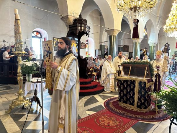 Στον Ιερό Μητροπολιτικό Ναό Ζωοδόχου Πηγής Νάξου, ιερούργησε την Κυριακή 20-8-2023, ο Σεβασμιώτατος Ποιμενάρχης κ. Καλλίνικος, ο οποίος χοροστάτησε στον Όρθρο και εν συνεχεία προεξήρχε της Θείας Λειτουργίας, πλαισιούμενος από τον Αρχιερατικό Επίτροπο Νέας Ιωνίας, Αρχιμ. Ηλία Καρατζά (ο οποίος και κήρυξε τον θείο λόγο) τον Πρωτοσυγκελλεύοντα της Ιεράς Μητροπόλεως, Αρχιμ. Δωρόθεο Βενετσανόπουλο, τους Πρωτοπρ. Αντώνιο Απειρανθίτη, Απόστολο Βελώνη και Νεκτάριο Αλεξόπουλο και τον Διάκονο Νεκτάριο Σκουλάτο.