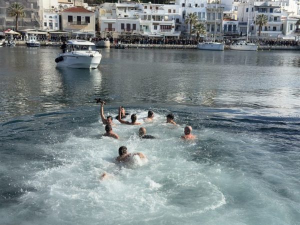 Ακολούθως εν πομπή κλήρος και λαός κατευθύνθηκαν στον λιμένα της Νάξου, όπου πραγματοποιήθηκε η κατάδυση του Τιμίου Σταυρού και ο καθαγιασμός των υδάτων. Τον Σταυρό ανέσυρε από την θάλασσα ο κ. Ιορδάνης Τσελεπίδης, στον οποίο ο Σεβασμιώτατος επέδωσε έναν χρυσό σταυρό και μια Εικόνα καθώς και από μία μικρή ευλογία σε όλους όσοι έπεσαν στη θάλασσα για να ανασύρουν τον Τίμιο Σταυρό.
