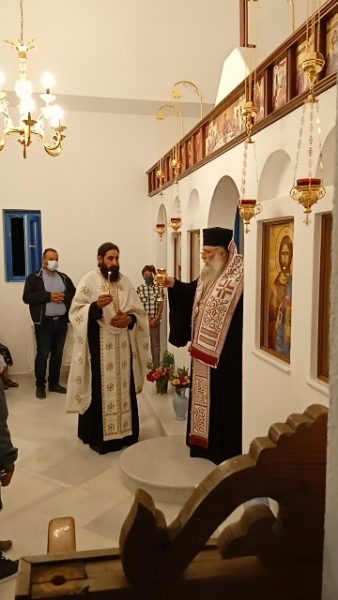 Το απόγευμα της Δευτέρας, ο Σεβασμιώτατος Μητροπολίτης Παροναξίας κ. Καλλίνικος μετέβη στην περιοχή της Αλυκής Πάρου όπου τέλεσε την Ακολουθία των Θυρανοιξίων σε νέο Ιερό Ναό, τον οποίο ανήγειρε η οικογένεια Εμμανουήλ και Ευαγγελίας Χερουβείμ, εις μνήμην της κόρης τους Μαρίας.