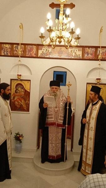 Το απόγευμα της Δευτέρας, ο Σεβασμιώτατος Μητροπολίτης Παροναξίας κ. Καλλίνικος μετέβη στην περιοχή της Αλυκής Πάρου όπου τέλεσε την Ακολουθία των Θυρανοιξίων σε νέο Ιερό Ναό, τον οποίο ανήγειρε η οικογένεια Εμμανουήλ και Ευαγγελίας Χερουβείμ, εις μνήμην της κόρης τους Μαρίας.