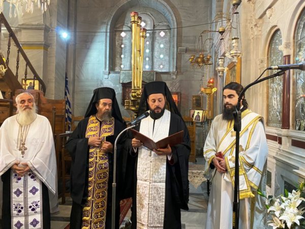 Ακολούθως ο Εφημέριος του ως άνω Ιερού Ναού και Γενικός Αρχιερατικός Επόπτης νήσου Νάξου, Πρωτοπρεσβύτερος Ιωάννης Μανιός, ανέγνωσε Ψήφισμα της Ενορίας Καλοξύλου, στην οποία υπηρέτησε για μια εξαετία ως Εφημέριος ο εκλιπών Ιερομόναχος και την οποία με πολύ ζήλο, ακόμη και με προσωπικές του μεγάλες δωρεές, εξωράϊσε.