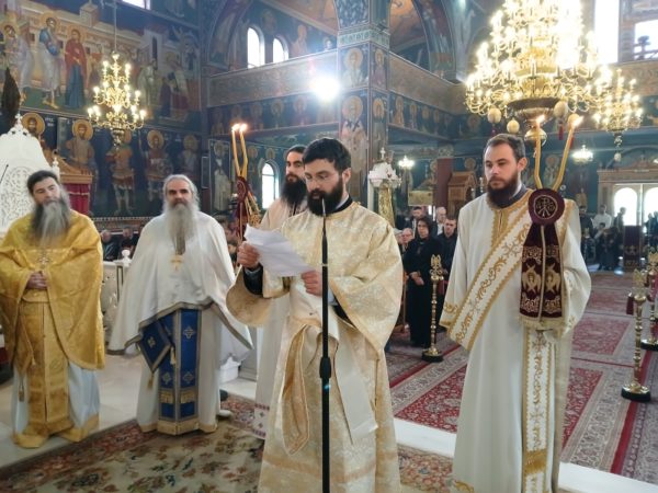 Μετά την Δοξολογία, κατά την προβλεπόμενη εκκλησιαστική τάξη και προτροπή του Σεβασμιωτάτου, ο Θεοφ. Επίσκοπος Κεράμων χειροθέτησε Αναγνώστη τον υποψήφιο Διάκονο Παναγιώτη Κοσμόπουλο και κατόπιν ο Σεβασμιώτατος τέλεσε την χειροθεσία του στον βαθμό του Υποδιακόνου.