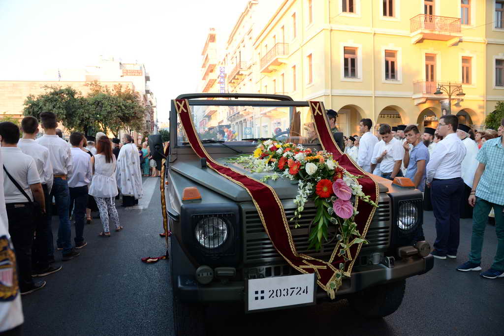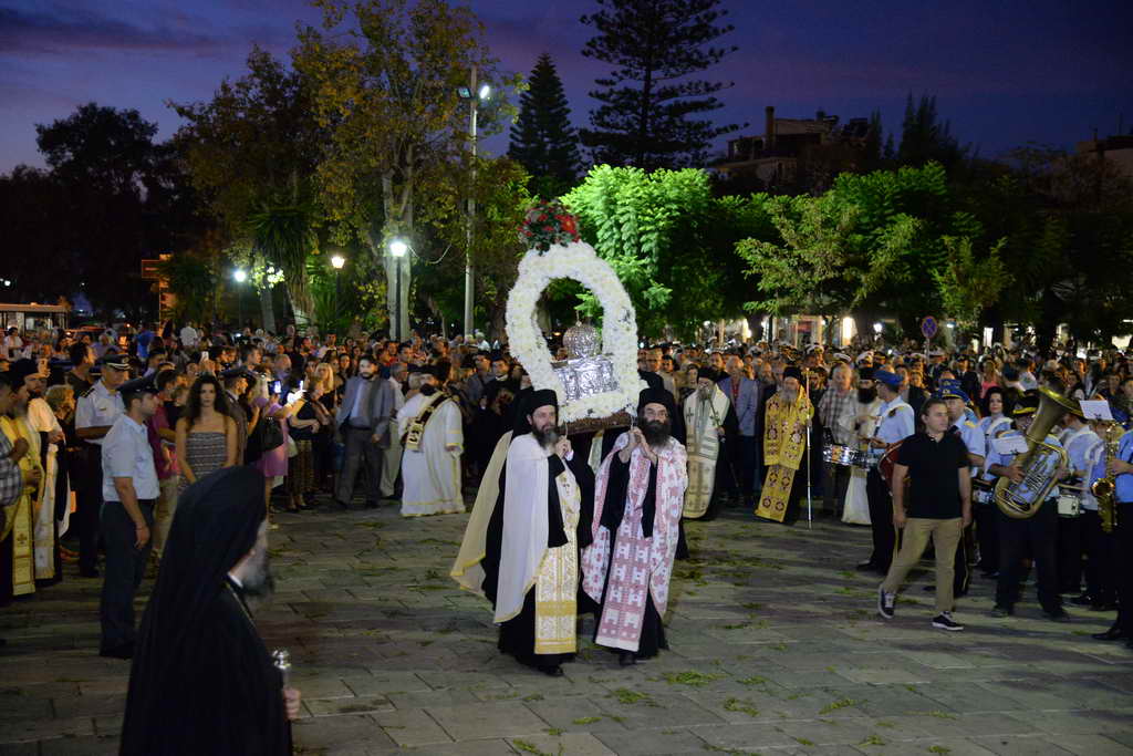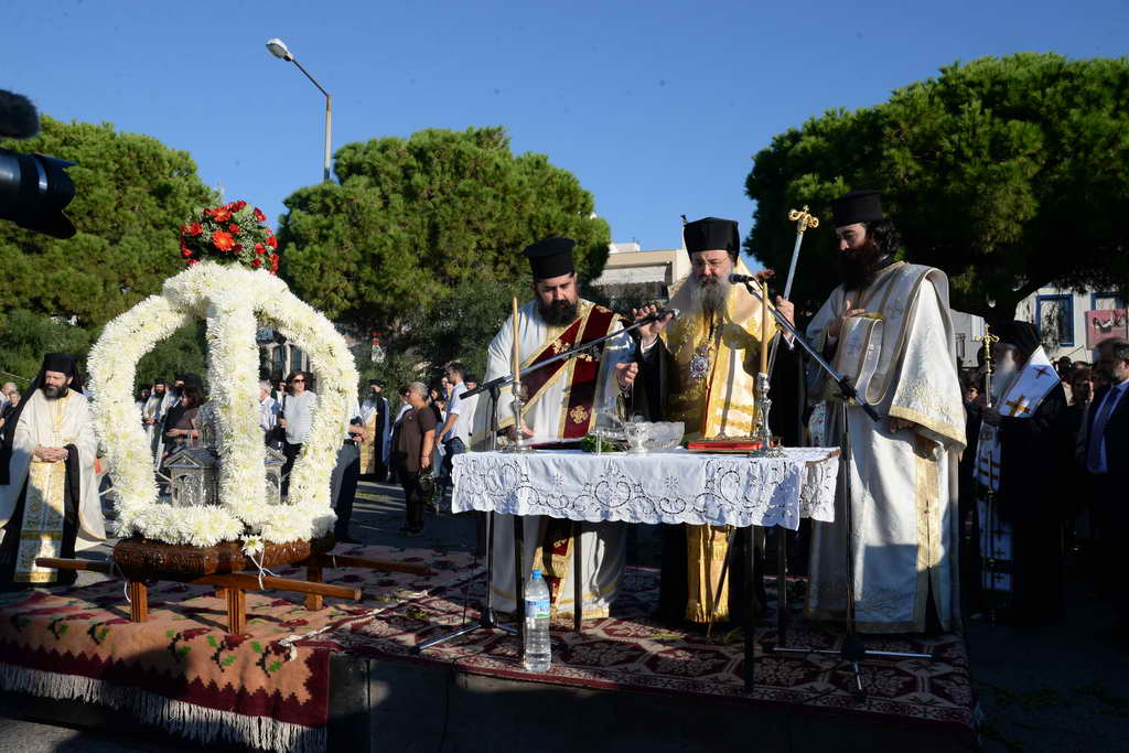 Ἐν συνεχείᾳ ἡ ἁγία Κάρα καί ἡ Ἱερά Εἰκόνα, ἐλιτανεύθησαν διά θαλάσσης, μέχρι τόν μῶλο τῆς Ἁγίου Νικολάου, ἐνῶ στήν Πλατεία Τριῶν Συμμάχων ἐτελέσθη Δοξολογία.
