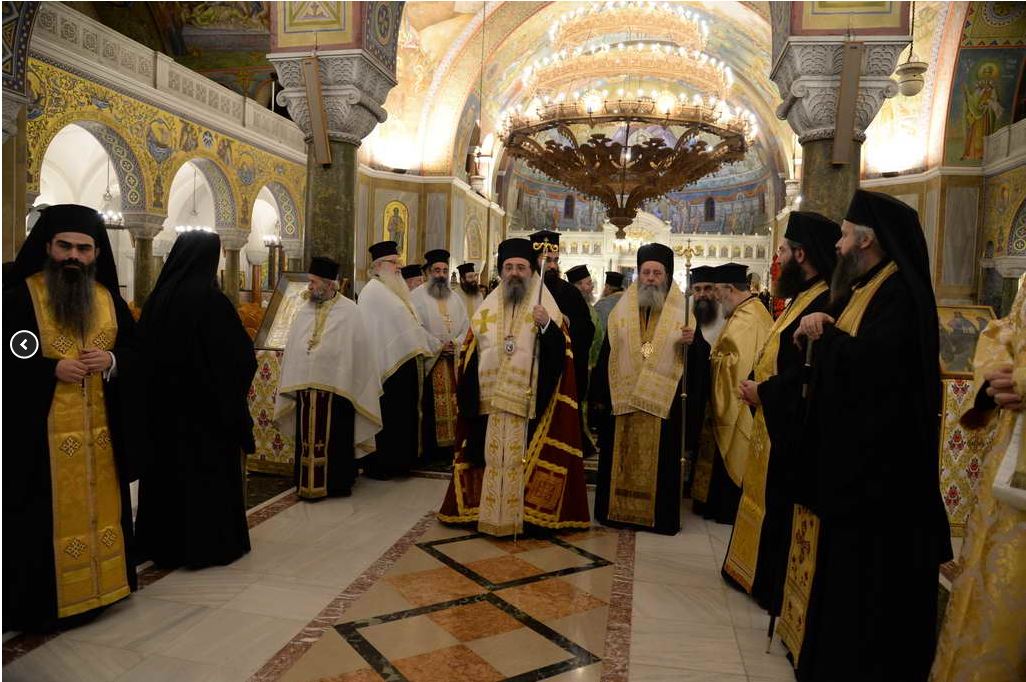 Στὰ πρόπυλα τοῦ Ἱεροῦ Ναοῦ ἔγινε ἡ ὑποδοχὴ Λειψάνων τῶν Ἀχαιῶν Ἁγίων οἱ ὁποῖοι τιμῶνται ἀπὸ τὴν τοπικὴ Ἐκκλησία καὶ ἐν συνεχείᾳ ἐτελέσθη ὁ Πανηγυρικὸς Ἑσπερινὸς, χοροστατοῦντος τοῦ Σεβασμιωτάτου Μητροπολίτου Πατρῶν κ.κ. Χρυσοστόμου καὶ συγχοροστατοῦντος τοῦ Θεοφιλεστάτου Ἐπισκόπου Κερνίτσης κ. Χρυσάνθου, τῇ συμμετοχῇ πολλῶν Ἱερέων καί Διακόνων τῆς Ἱερᾶς Μητροπόλεως.