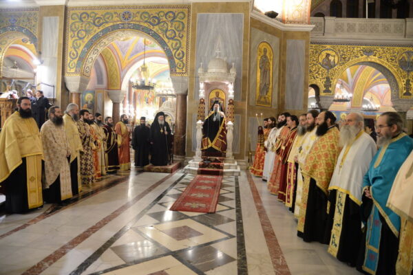 Το Σάββατο 18.1.2020, στον Νέο Ιερό Ναό του Αγίου Αποστόλου Ανδρέου Πατρών, τελέστηκε ο Πανηγυρικός Εσπερινός χοροστατούντος του Σεβασμιωτάτου Μητροπολίτου Πατρών κ. Χρυσοστόμου και συγχοροστατούντος του Θεοφιλεστάτου Επισκόπου Κερνίτσης κ. Χρυσάνθου, με την συμμετοχή πολλών Ιερέων και Διακόνων της Ιεράς Μητροπόλεως και πλήθους λαού.