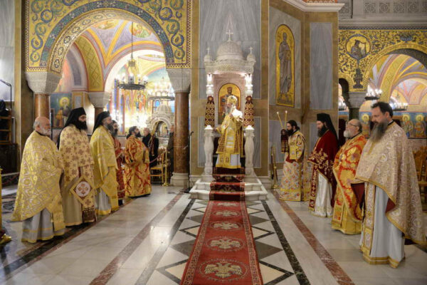 Ανήμερα, 19.1.2020, ετελέσθη πανηγυρική Θεία Λειτουργία προεξάρχοντος του Σεβασμιωτάτου Μητροπολίτου Πατρών κ.κ. Χρυσοστόμου, με την συμμετοχή Ιερέων και Διακόνων της Ιεράς Μητροπόλεως και πλήθους ευσεβούς Λαού.
