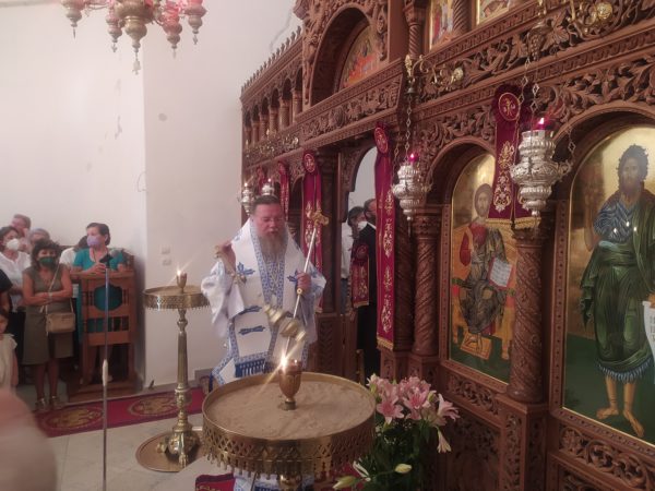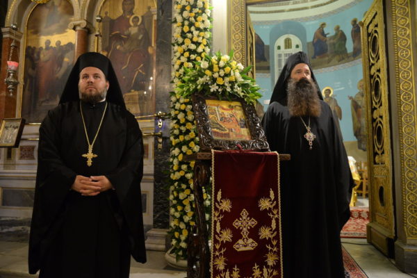 Στον πανηγυρικό Εσπερινό χοροστάτησε και μίλησε ο Θεοφιλέστατος Επίσκοπος Ευκαρπίας του Οικουμενικού Πατριαρχείου κ. Ιερόθεος, ο οποίος αναφέρθηκε στην σημασία της εορτής και βάση αγιογραφικών χωρίων αναφέρθηκε στο πανάγιο Πρόσωπο της Υπεραγίας Θεοτόκου.