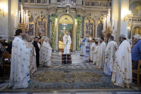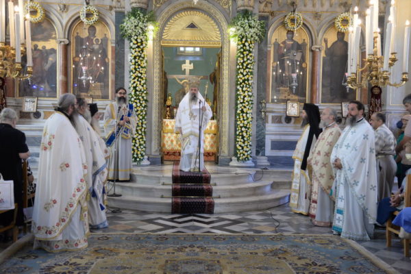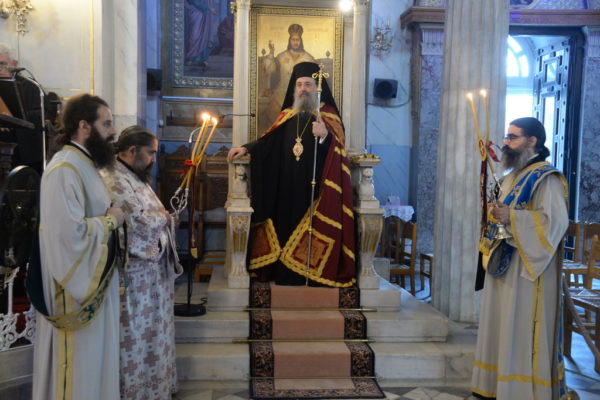 Την Ιερά Αγρυπνία τέλεσε ο Πανοσιολογιώτατος Αρχιμ. π. Αρτέμιος Αργυρόπουλος, Πρωτοσύγκελλος της Ιεράς Μητροπόλεως, ο οποίος εν πληθούση Εκκλησία, κήρυξε τον θείο λόγο.