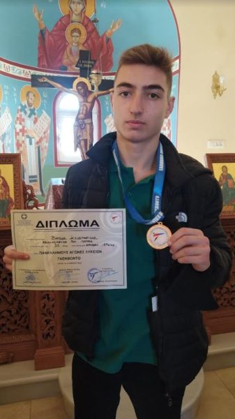 Την τρίτη θέση στους πανελλήνιους αγώνες TAEΚBONTO, κατέκτησε ο μαθητής του Εκκλησιαστικού Λυκείου Πατρών, Κωνσταντίνος Βάρσος, ο οποίος διακρίνεται για το ήθος του και την επιμέλειά του στα μαθήματα.
