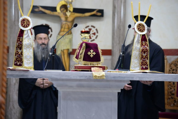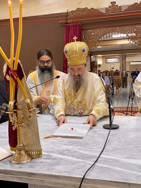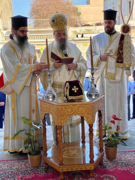 Επίσης ευχαρίστησε τον πρώην Δήμαρχο και τον νυν Δήμαρχο, ως και τους Δωρητές και Ευεργέτες για την ανοικοδόμηση του Ιερού Ναού, τους οποίους τίμησε ήδη κατά την τελετή των θυρανοιξίων του Ναού.