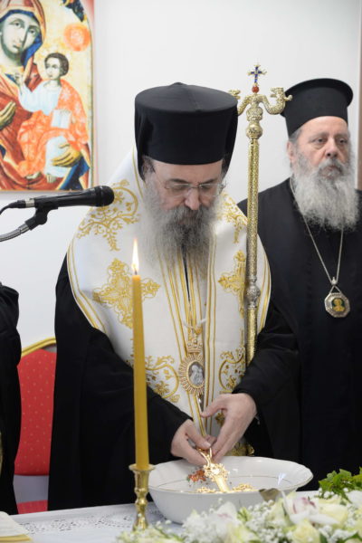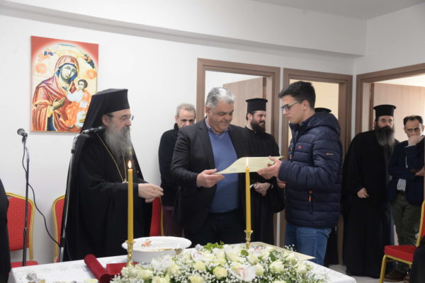 Ο Σεβασμιώτατος τέλεσε τον Αγιασμό των εγκαινίων του νεοδμήτου ωραιοτάτου κτηρίου και αναφέρθηκε στις προσπάθειες από τα σχέδια, την θεμελίωση και τις εργασίες έως και την αποπεράτωσή του και ευχαρίστησε όλους όσοι συνείργησαν από την αρχή μέχρι το τέλος, προκειμένου να επιτευχθεί αυτός ο ιερός και ωραίος σκοπός.