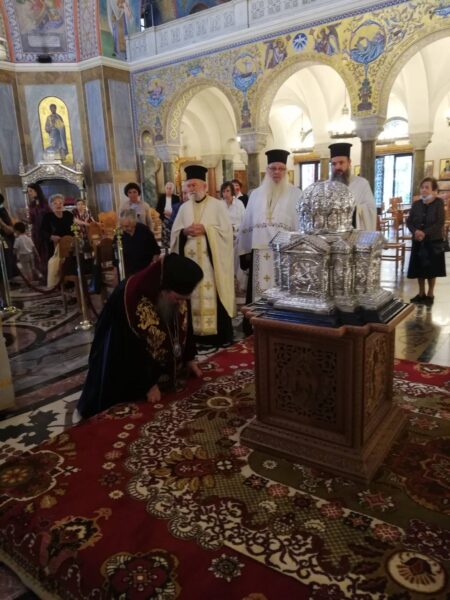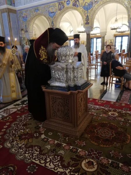 Σήμερα. 26.9.2020 το πρωί στις 11:00 έγινε η Λιτανεία εντός του Ιερού Ναού του Αγίου Αποστόλου Ανδρέου της τιμίας Κάρας του και τοποθετήθηκε σε ειδικό βάθρο στο κέντρο του μεγαλοπρεπούς Ιερού Ναού, για να αρχίσει το προσκύνημα υπό των ευσεβών χριστιανών.
