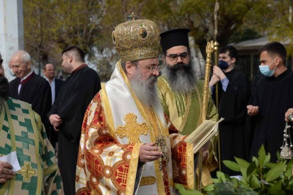 Στον Ιερό Ναό του Αγίου Αποστόλου Ανδρέου Πατρών, ετέλεσε την Θεία Λειτουργία της Κυριακής της Σταυροπροσκυνήσεως, ο Σεβασμιώτατος Μητροπολίτης Πατρών κ.κ. Χρυσόστομος και τα ιερά μνημόσυνα των αοιδίμων Εθνομαρτύρων Αρχιερέων των Πατρών, Νεοφύτου, Γερμανού του Α’ και Παρθενίου του Ε’, των οποίων οι προτομές εστήθησαν πέρυσι, με την συμπλήρωση 200 ετών από της Επαναστάσεως του 1821, στον αύλειο χώρο του μεγαλοπρεπούς Ιερού Ναού του Αγίου Ανδρέου.