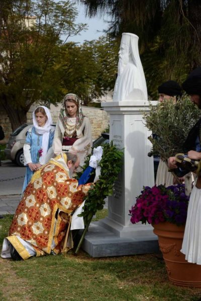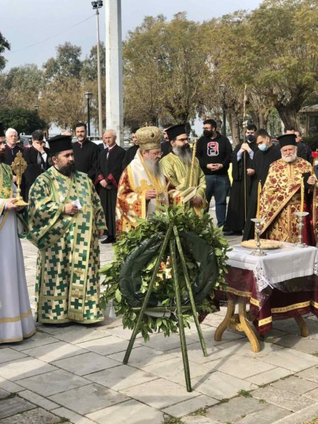 Μετά την Θεία Λειτουργία εσχηματίσθη πομπή η οποία κατέληξε στις προτομές των Εθνομαρτύρων Αρχιερέων, όπου ανεπέμφθη επιμνημόσυνη δέηση και κατετέθησαν στέφανοι, από τον Σεβασμιώτατο Μητροπολίτη Πατρών κ.κ. Χρυσόστομο.