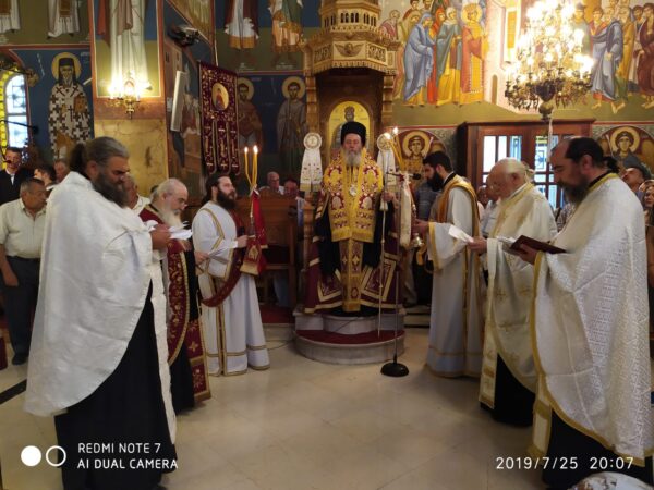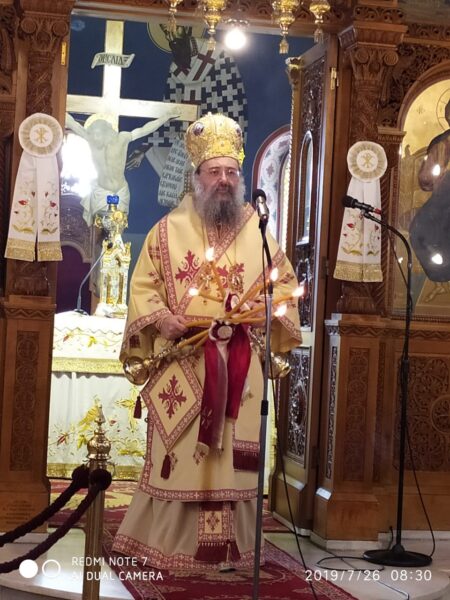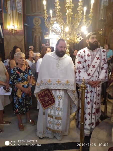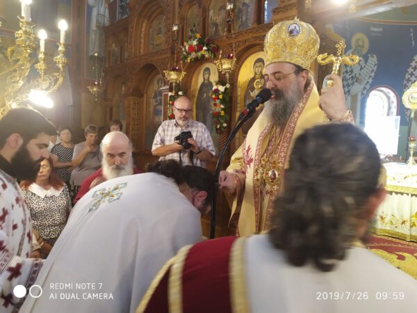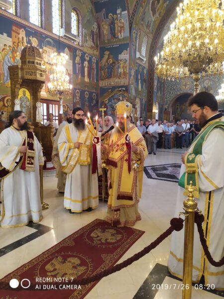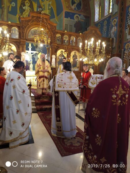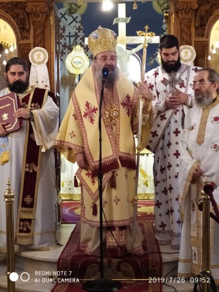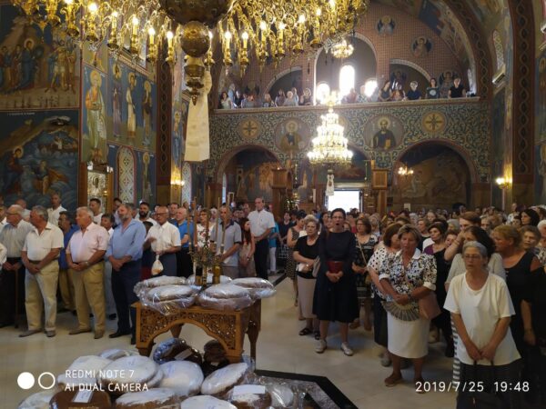 Ἀνήμερα, 26.7.2019, ὁ Θεοφιλέστατος ἐτέλεσε τὴν Θεία Λειτουργία στὸν πανηγυρίζοντα Ἱερὸ Ναὸ Ἁγίας Παρασκευῆς Ρακίτας Πατρῶν, ἐν πληθούσῃ Ἐκκλησίᾳ.