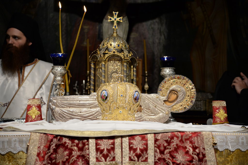 Κατέληξε δέ μέ τόν ἀκροτελεύτιον ὓμνον ἐκ τοῦ κανόνος τῆς ἑορτῆς τῆς Κοιμήσεως τῆς Θεοτόκου: « Σώζοις ἀεί Θεοτόκε τήν κληρονομίαν Σου»