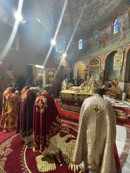 Ανήμερα, τελέσθηκε Αρχιερατικό Συλλείτουργο, προεξάρχοντος του Σεβασμιωτάτου Μητροπολίτη Πατρών κ. Χρυσοστόμου και συνιερουργούντος του Θεοφιλεστάτου Επισκόπου Κερνίτσης κ. Χρυσάνθου, ο οποίος χοροστάτησε στον Όρθρο.