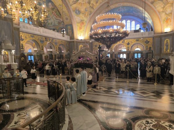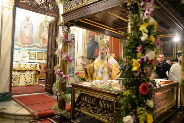 Στον Ιερό Μητροπολιτικό Ναό της Ευαγγελιστρίας Πατρών, προέστη των Ιερών Ακολουθιών ο Σεβασμιώτατος Μητροπολίτης Πατρών κ. Χρυσόστομος, ο οποίος στο τέλος της Περιφοράς, απηύθυνε το μήνυμα της νίκης της ζωής εναντίον του θανάτου, όπως βιώνεται μέσα από την εις Άδου Κάθοδον του Κυρίου ημών Ιησού Χριστού και ευχήθηκε σε όλους πατρικά, Πάσχα Πανευφρόσυνο.